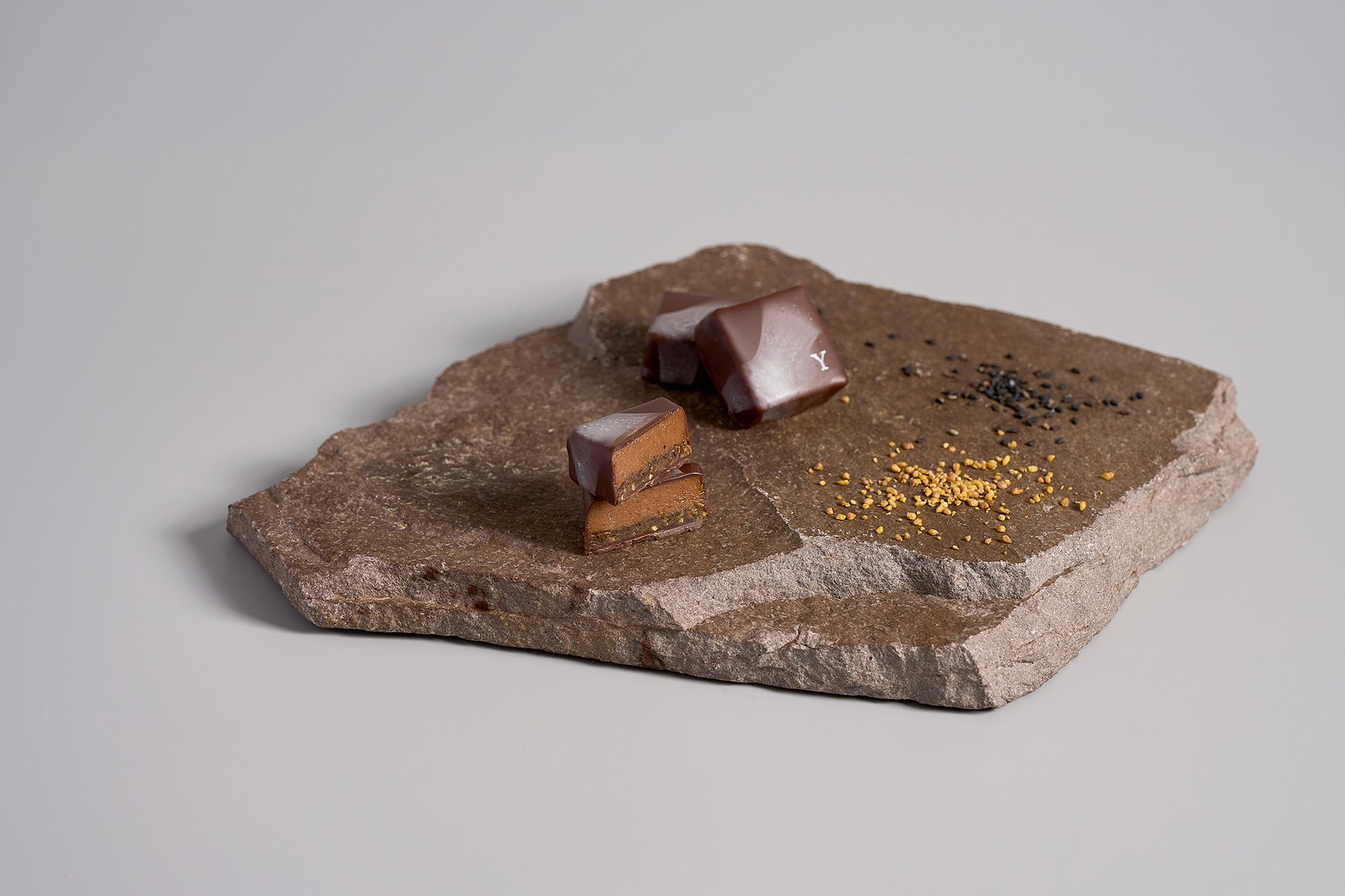 キャラメルで焚き上げた黒胡麻とアーモンドで作った自家製プラリネに