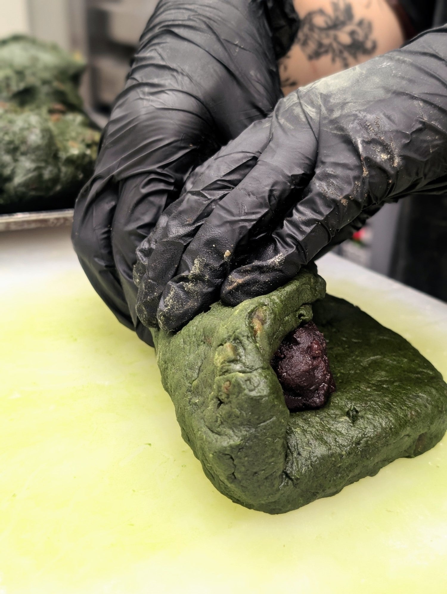蓬(よもぎ)をふんだんに加え、餡子と組み合わせた和風のシュトーレン。